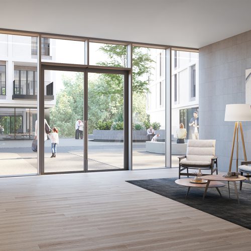 Le residenze sono collegate da una promenade pedonale comune su cui affacciano le hall condominiali vetrate e gli spazi comuni condivisi, che contribuiscono a rendere la vita dei suoi abitanti sempre più ricca e completa: spazi coworking, palestra, area gioco bimbi ed una zona living con cucina.